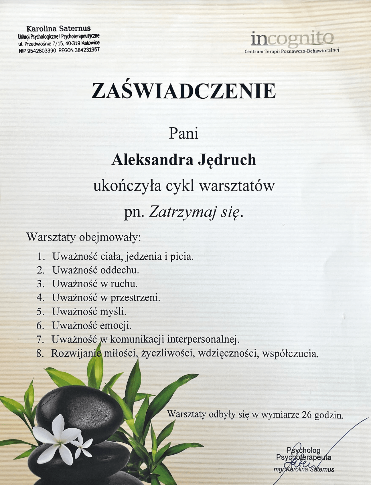 - Kurs mindfulness z elementami ACT – 26 h