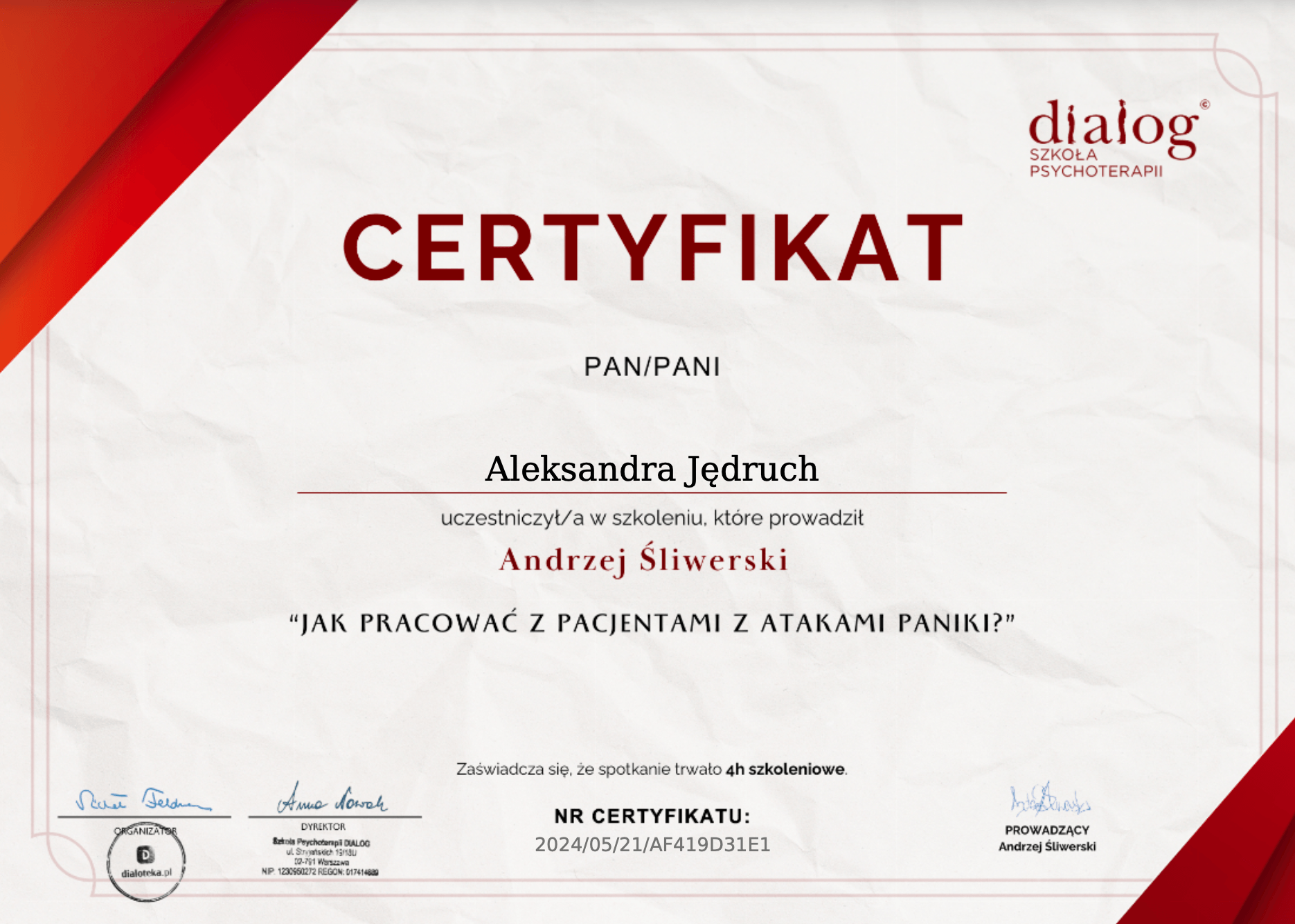 - Jak pracować z pacjentami z atakami paniki? – 4h
